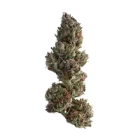 דעם שטאַרק פאַבריק מיט פּרידאַמאַנאַנטלי ינדיקאַ גענעס טראגט אַ גרויס סומע פון סמאָלע אָנגעפילט מיט זאַפטיק קאַננאַבינאָידס. זייַן בלומען זענען דוי, עראַמאַטיק און סאָליד, מיט געשמאַק פלייווערז און עראָומאַז פון פרוכט אלנגעוויקלט אין מאַסקי ערד טאָנעס. Aשיין קוקן שפּאַנונג, עס גייט אַ סטאַנינג בורגונדי אָדער לילאַ קאָליר בעשאַס קיורינג.